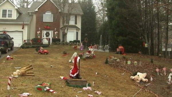 Last Christmas the guy on the corner erected a Santa sleigh in his front yard complete with all eight reindeer. Three weeks after Christmas only Dasher and Dancer were still standing. The rest appeared to have been victims of an apparent reindeer drive-by shooting. This year our next door neighbors put a life-sized Santa on their roof and attached him to the chimney with a cord. There’s something very un-jolly about Santa being held against his will. A week before Christmas, however, Santa was dangling off the roof with the cord wrapped around his neck in a macabre Santa suicide. But the people down the block hold the record for post-Christmas display negligence.